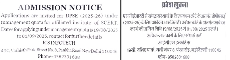 Applications are invited under Management Quota for 2 Years DPSE Programme For the Session 2025-2026.
